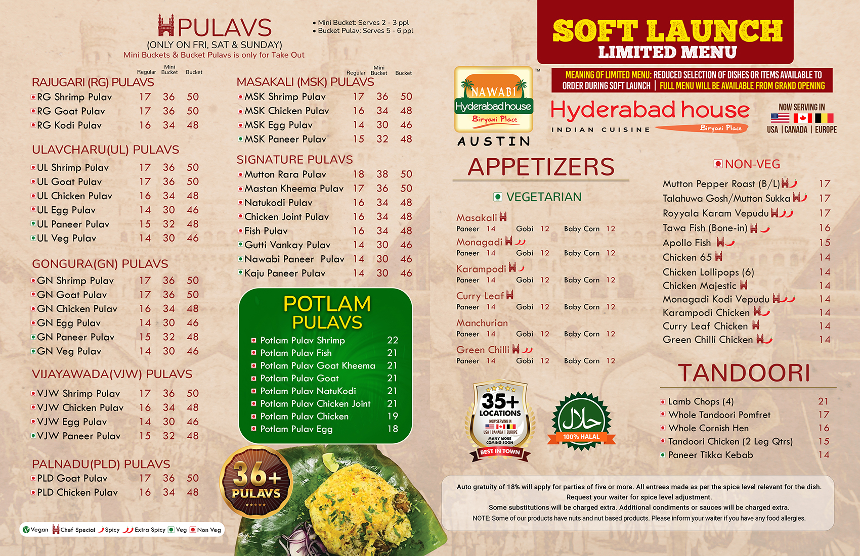 Meaning of Limited Menu: Reduced section of dishes or items available to order during soft launch. Full menu will be available from Grand Opening